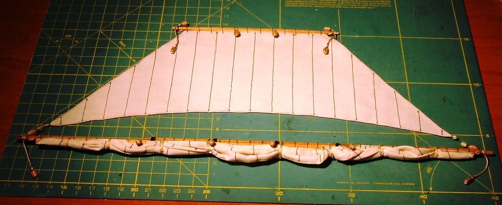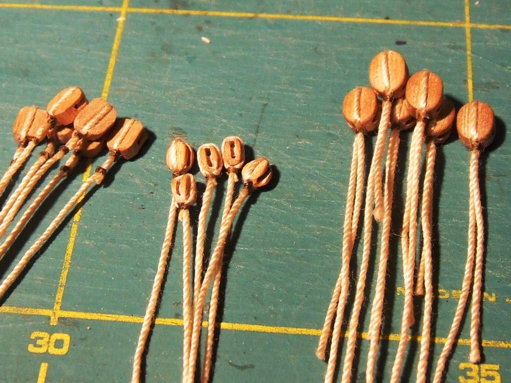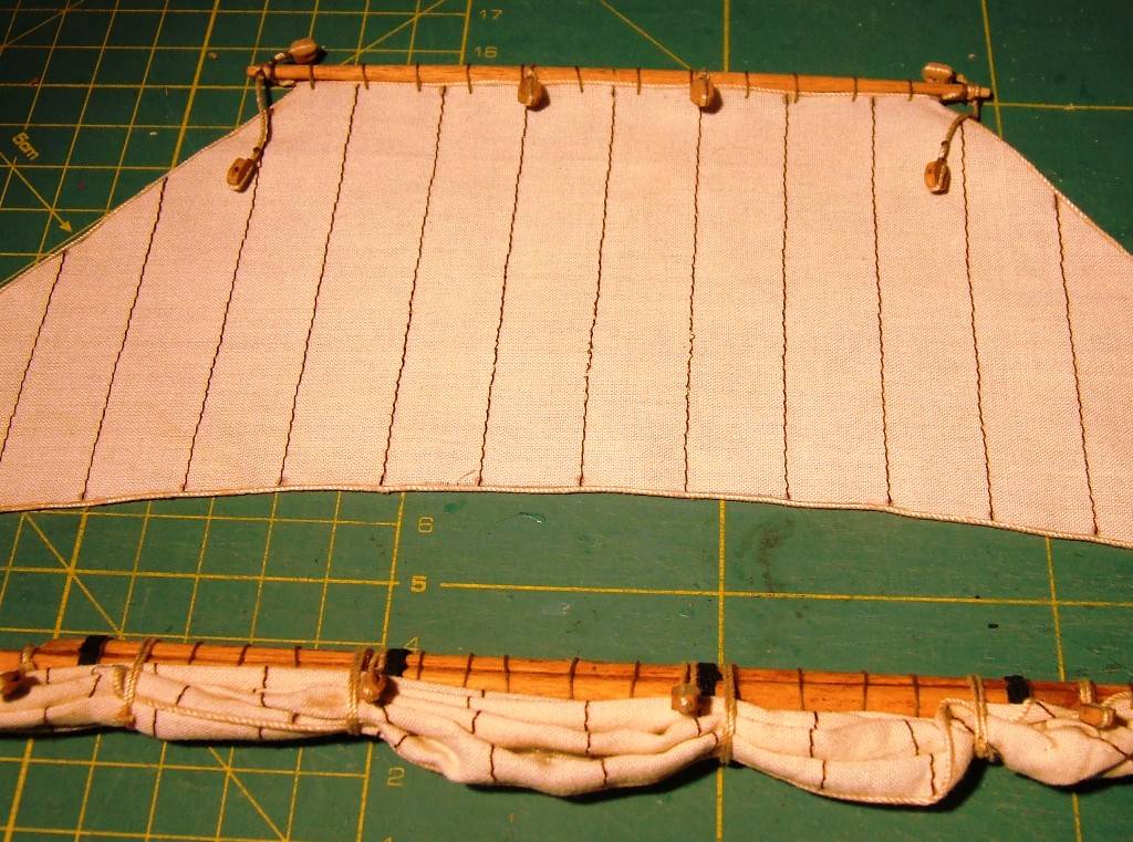Przywiązałem 16 bloczków do żagli grota.