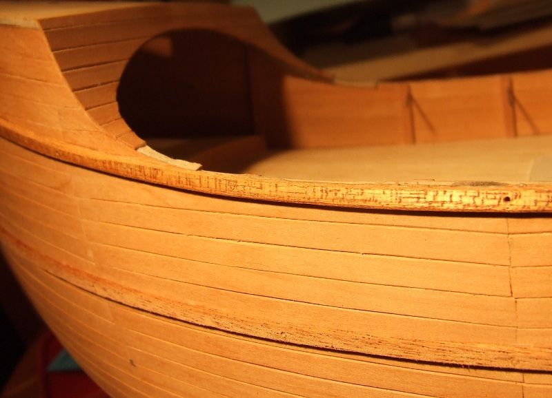 Krawędzie stewy dziobowej i stępki zostały ofornirowane.