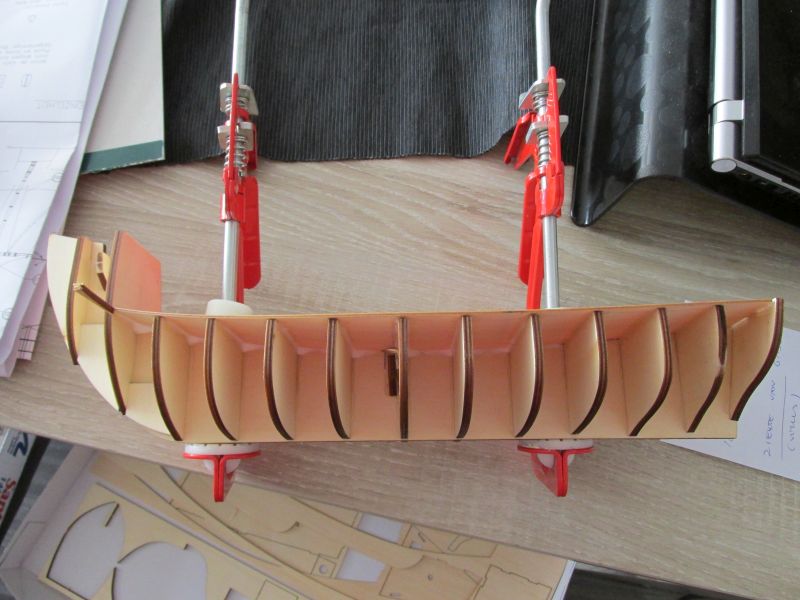Klejenie wszystkich wręg. Użyłem do tego kleju uhu coll express. Nie żałowałem kleju żeby było dobrze sklejone.
