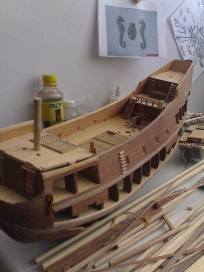 spędziłem wiele godzin na poszukiwaniach czegoś na temat tego galeonu i znalazłem tylko kilka relacji z budowy i zdjęcia ukończonego już modelu ,obecnie jestem na etapie wyposażania pokładu nie mam żadnych informacji na temat masztów i olinowania i tu moja prośba do kogoś kto może budował lub buduje ten model może byłby w stanie odsprzedać te plany dołączane do gazet?