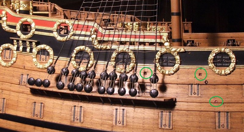 Pewny jesteś że ostatnie dwa jufersy są tej samej wielkości co te przy wantach? Z reguły w mocowano tam paduny, a średnica była około 3/4 lub 4/5 tych przy wantach.