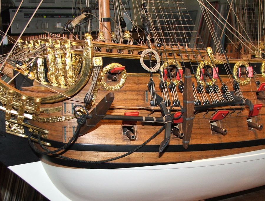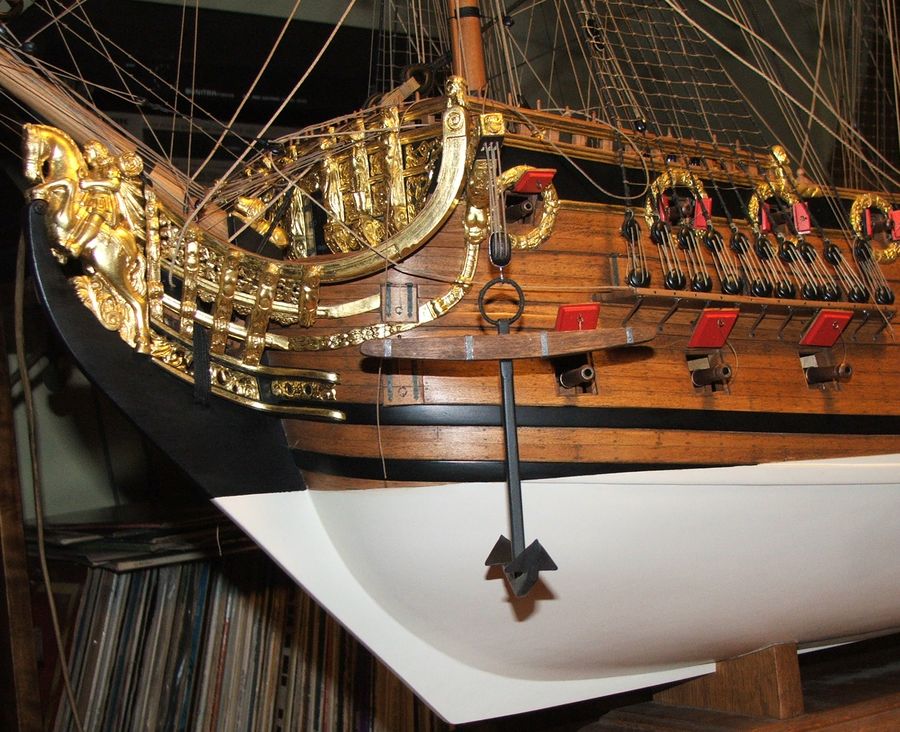 Adamie przeliczyłem średnicę liny kotwicznej i przy szerokości kadłuba 44 stopy i 10 cali lina modelu powinna mieć fi~4mm co w rzeczywistości daje ~20cm.Czy to możliwe.Chciałbym jedną z kotwic powiesić na bloku pozostałe zacumować na ławach wantowych.Czy takie rozwiązanie ze zwisającą kotwicą i przy wysuniętych armatach nie jest zbyt nienaturalne.Chociaż fakt braku żagli i z armatami na stanowiskach jest już sam w sobie niespotykany.Pozdr.R