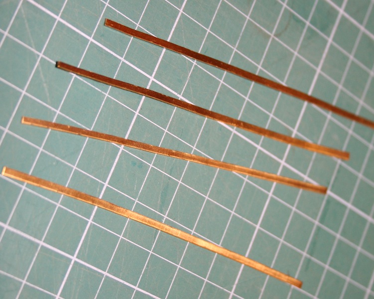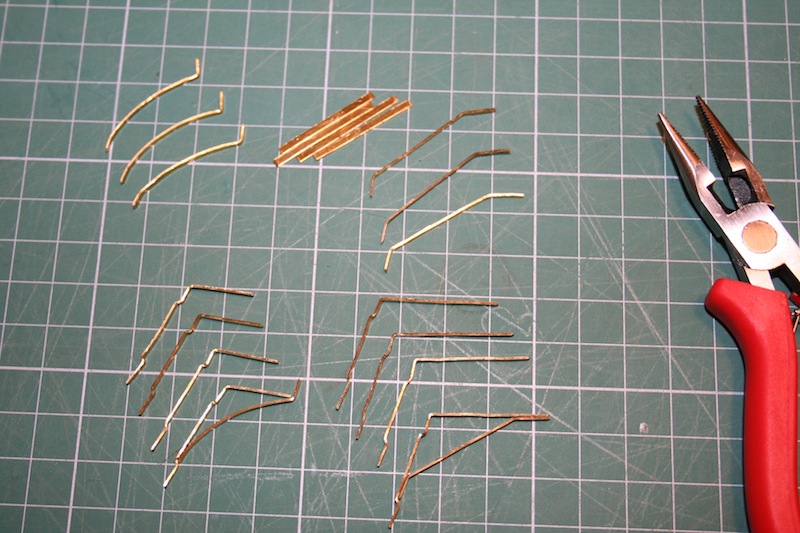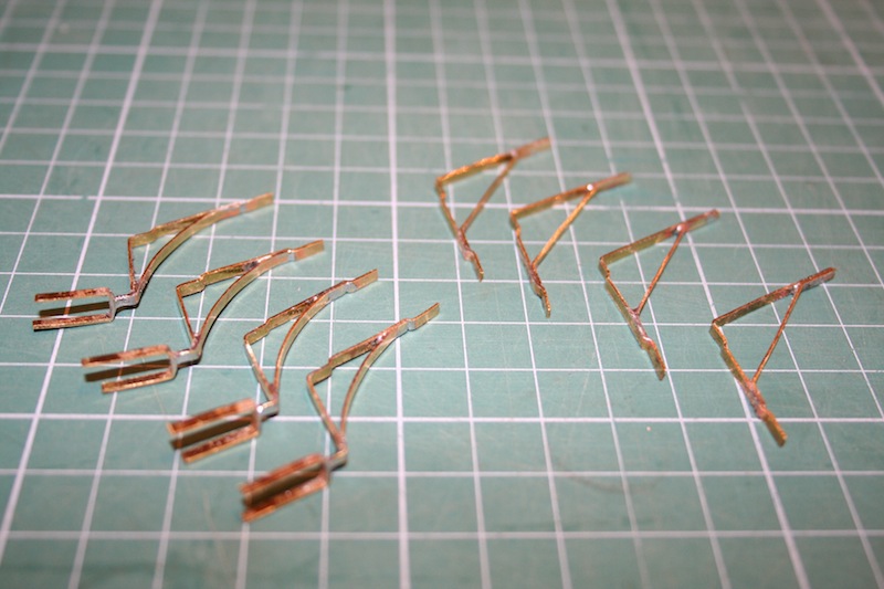 Obecnie na warsztacie podpory pomostów. Blaszki wspominane w moim poprzednim wejściu dotarły już dość dawno, ale zabierałem się do roboty jak do jeża. Próbowałem ciąć je nożycami, ale otrzymywałem coś takiego.