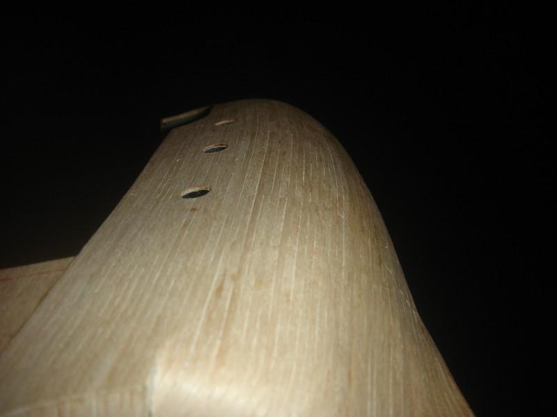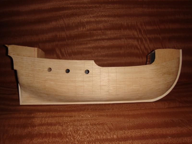 Stępka zrobiona :) z sklejki tej samej co szkielet czyli 5 mm(wklejona w szczelinę miedzy deskami poszycia) na zewnątrz oklejona fornirem z brzozy 0,6 Miejsca gdzie zostały jakieś szczelinki wypełniłem szpachlą z mączki drzewnej (ładnie daje sie bejcować - podobno :blink: )