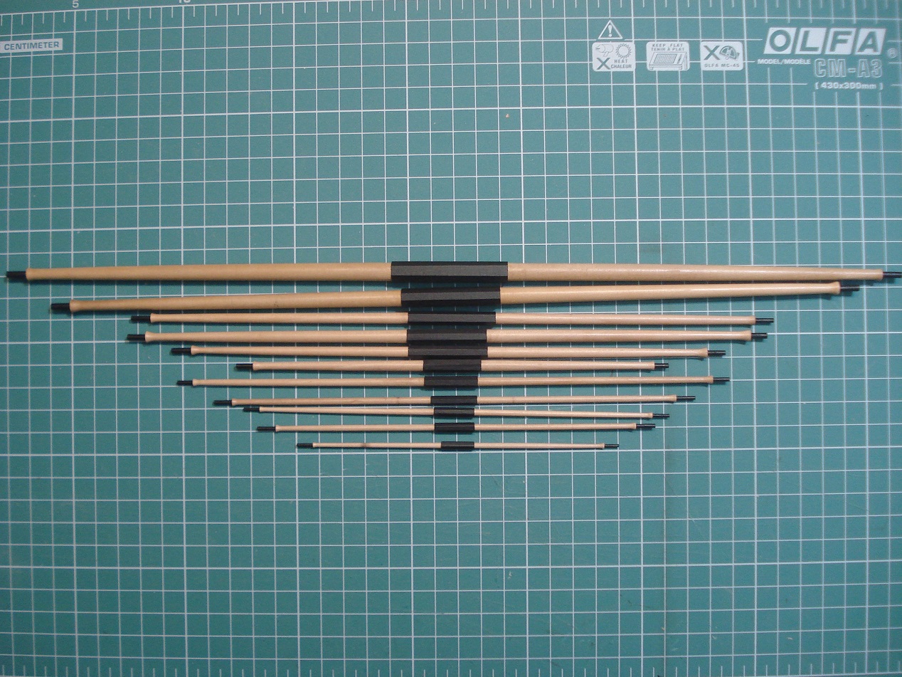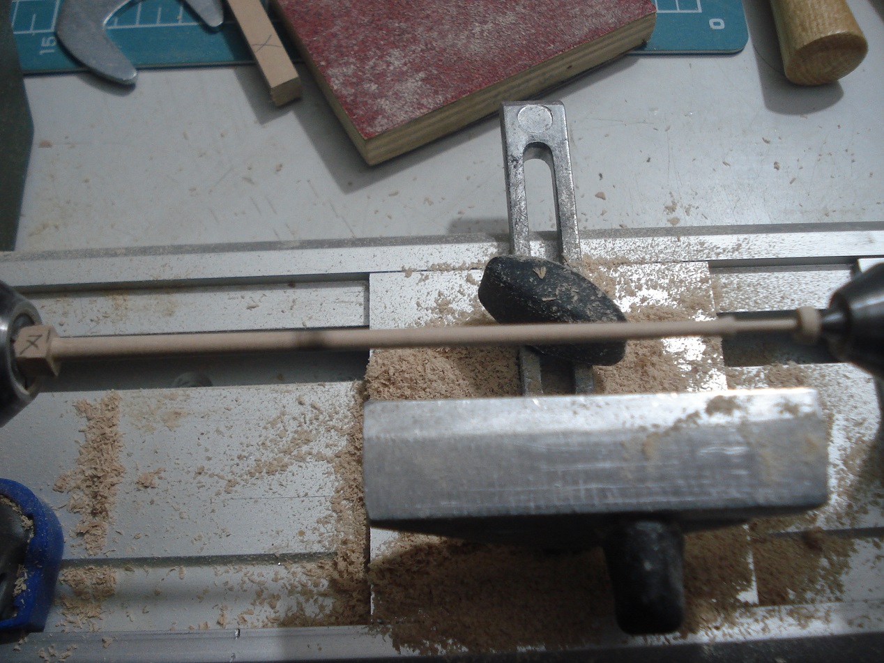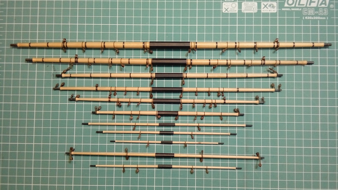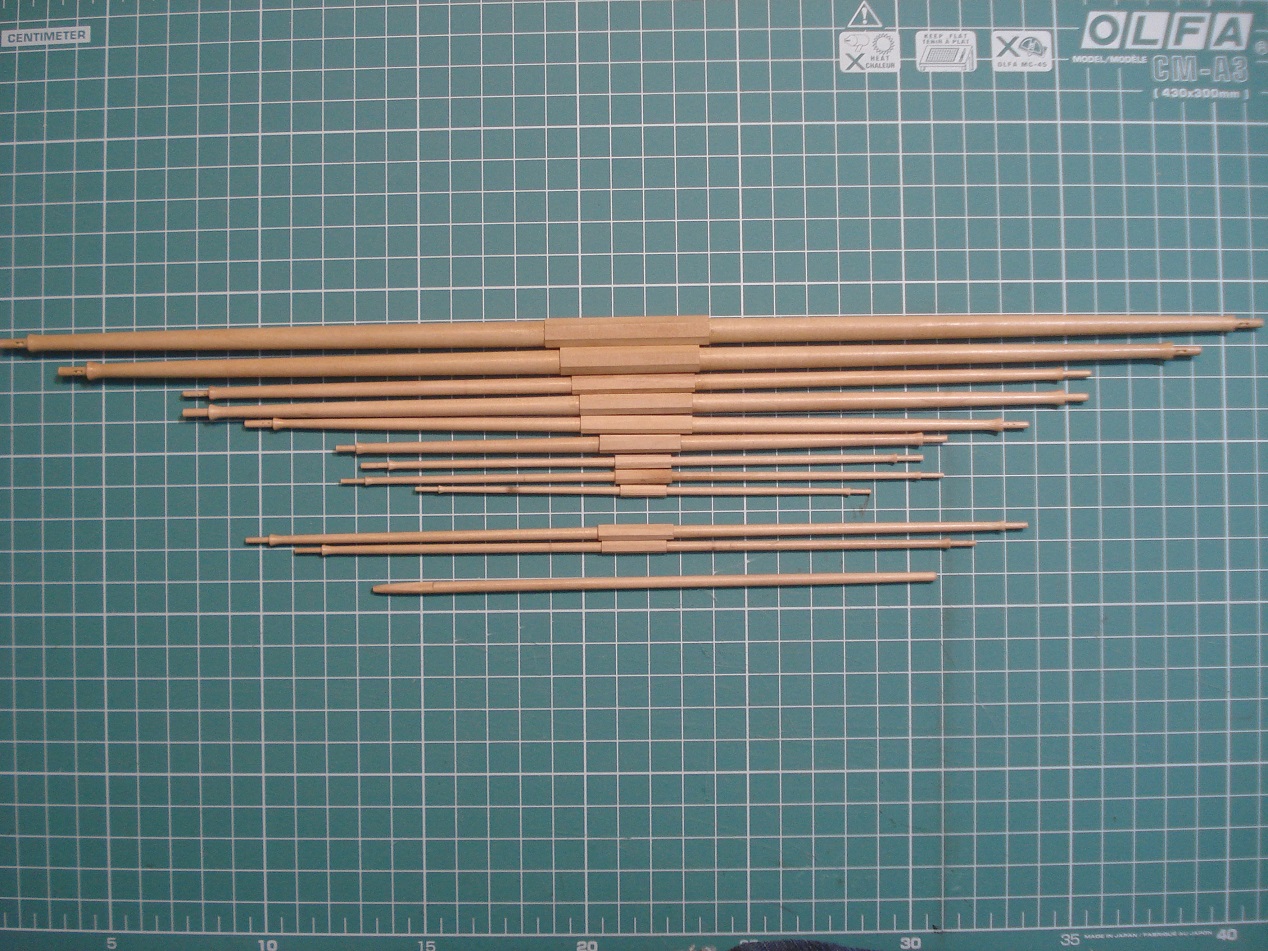 Witam, trochę to trwało ale wykonałem wszystkie reje do mojej Leokadii. Posłużyłem się w tym celu tokarką Proxxona 250. Największa reja ma długość 40cm. co znacznie przekracza możliwości tej tokarki