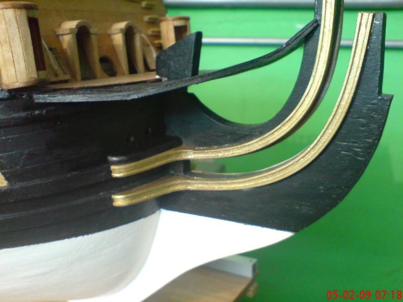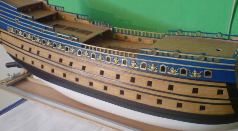 Pobawiłem się w ostatnim tygodniu zdobieniami na burty. Robiłem je z modeliny po utwardzeniu czyli wypaleniu w piekarniku modelina jest twarda można ją szlifowac i piłować . Trochę tego było listków i gałązek razem ponad 100szt .Całość pomalowałem złotolem i przeykleiłen cyjanopanem do burt .Wizerunki Króla Słońce może nie są najpiekniejsze i pewnie jakby król Słońce je zobaczył to mniałbym przechlapane że tak go zeszpeciłem ale talentu do rzeźb to nie mam niestety jednak muszę ostro nad tym popracować bo jeszcze wiele różnych rzeźb do zrobienia.