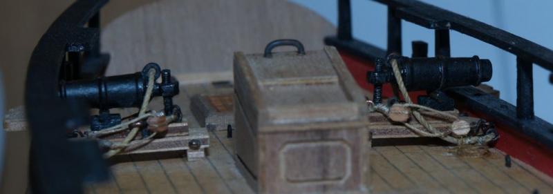 Zabrałem się za uzbrojenie dodatkowe - cztery karonady. Wykonane z odlewu, w kiepskim stanie... Postanowiłem trochę poprawić wersję prezentowaną przez instrukcję zestawu. Też żadna rewelacja, ale nie będzie aż tak uproszczona....