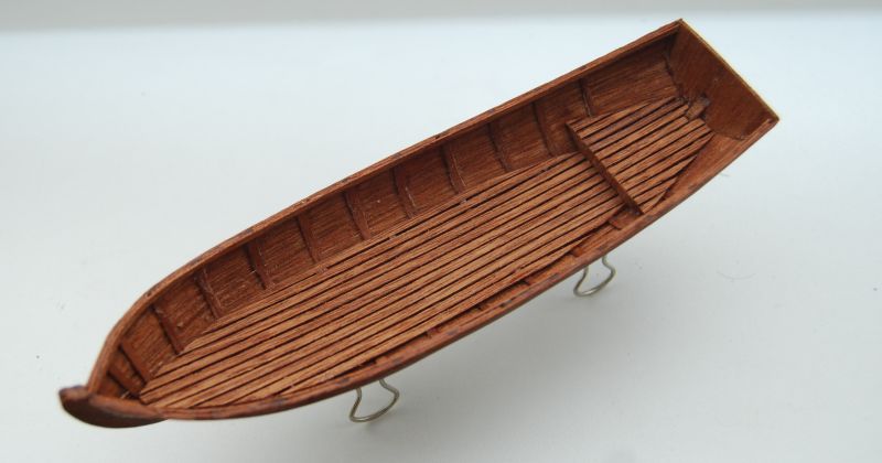 Bardzo ładna szalupa. Ja bym uzbroił w maszt, linki i dał na osobnej małej podstawce koło okretu