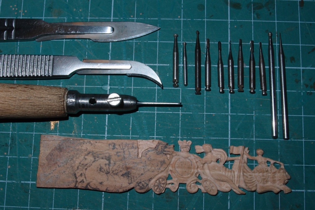 te czarne frezy to wiertła dentystyczne ( trochę już leciwe), w drewnianym uchwycie dłutko zrobione z igły do maszyny do szycia