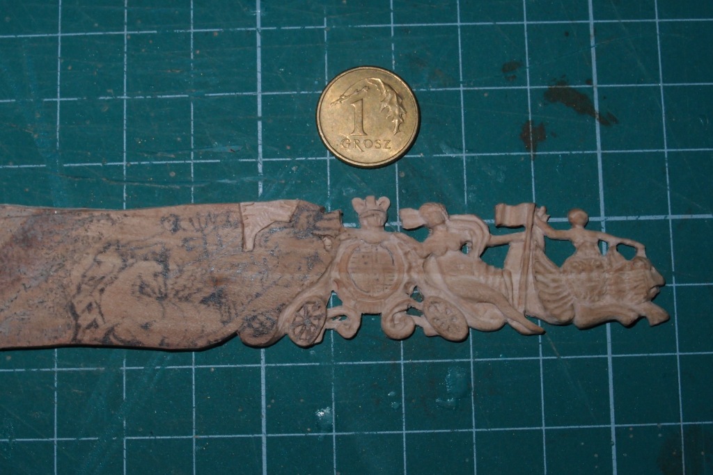 Chyba wszystko jasne, bo metoda była opisywana dużo wcześniej. Listewka to jabłoń, a na niej przekalkowany rysunek z planów.
