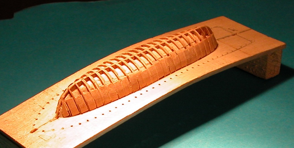 Teraz tylko jeszcze dokładnie wyrównać, "zeskosić" w okolicach dziobu i rufy i można kleić planki.