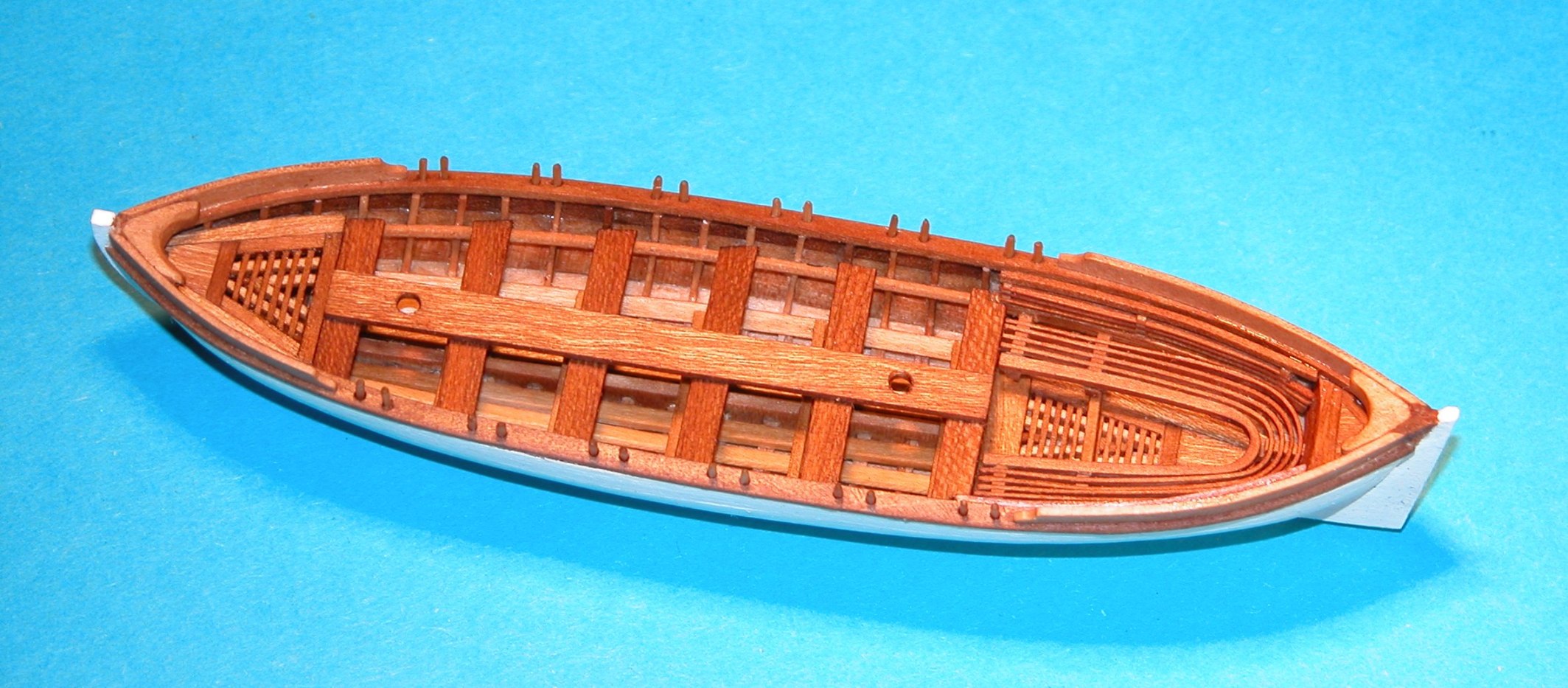 W czasie pracy natrętnie nawiedzała mnie myśl, że chyba ci zaprzeszli szkutnicy mieli do nas, modelarzy usiłujących odtworzyć ich dzieła w zmniejszonej skali, jakąś, niczym nie zawinioną, złość. Pal sześć toczone kolumienki podtrzymujące ławki (jakby nie mogły to być normalne słupki), ale gretingi na szalupie?? Przecież każdy, kto choćby kilka godzin spędził na jakimkolwiek pływadle doskonale wie, że rozbryzgi fal lub po prostu deszcz natychmiast zamoczą przedmioty umieszczone w zakrytych nimi bakistach. Chyba, że zamierzano tam przewozić kury albo inną żywiołę i zapewniano w ten sposób dopływ świeżego powietrza. Wygląda więc na to, że to sztuka dla sztuki albo czysta złośliwość.