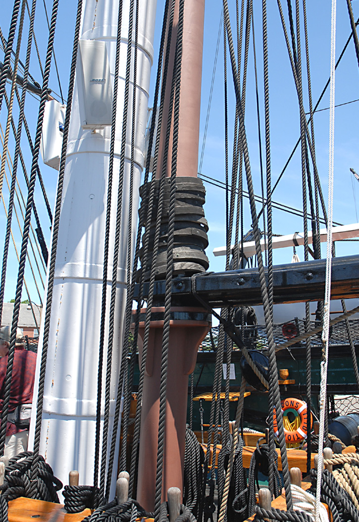 Drewniane kolka - tzw. "mast hoops" sa uzywane na bezanmaszcie (a w przypadku Constitution na cienszym maszcie biegnacym rownolegle do bezana, zwanym "spanker mast", w celu zamocowania zagla rufowego - tu spanker sail do w/w masztu. Owe 'kolka' sa poprzyszywane do krawedzi zagla i dzialaja jako swego rodzaju 'lozyska' slizgajace sie na maszcie podczas podnoszenia i opuszczania tego zagla.
