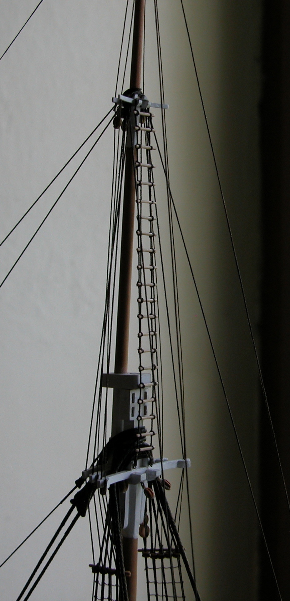 Dosłownie „rzutem na taśmę” skończyłem olinowanie stałe w wieczór sylwestrowy, tak że w nowym 2014 roku będę mógł się spokojnie zająć rejami, żaglami i sznurkami do ich obsługi.