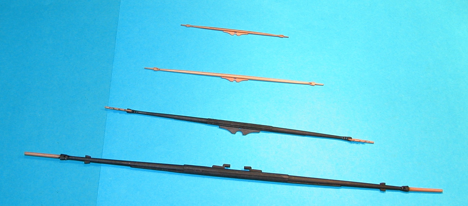 Trochę się rozpędziłem i zacząłem również okucia noków bombramsrei. Szczęśliwie niepotrzebnie (na tejże nie ma bowiem wytyków), bo prawdę powiedziawszy nie bardzo wyobrażam sobie w jaki sposób wlutował bym w nie wysięgniki z tulejkami. Takich zdolności i umiejętności jak Andrzej Korycki (pozdrowienia) – niestety nie posiadam.