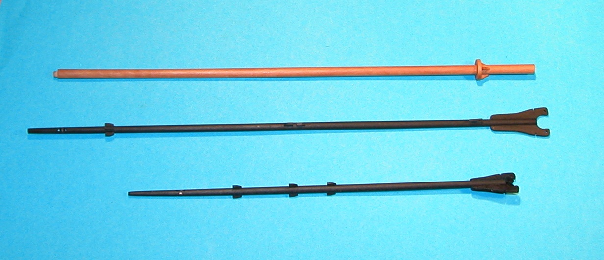 Po bliższym przyjrzeniu się arkuszom zdecydowałem się na budowę „mieszaną”, z dwóch podstawowych powodów: proponowane w wycinance drzewca, ze zwijanych w rurkę kartoników, uznałem za nie do przyjęcia. Drugi powód, to wersja modelu sprzed przebudowy (nie czarna), uznałem ją za nieciekawą. Zdobyłem dokumentację amerykańską, uznaną przez wielu modelarzy za najlepszą i postanowiłem zmierzyć się z wykonaniem, opierając się na niej. A zatem, kadłub poszyty jest / będzie papierem z wycinanki, lekko waloryzowanym, pokłady z kartonowej wycinanki, „patyczki” jednak drewniane – jak najbardziej zgodne z dokumentacją amerykańską. Działa chcę wytoczyć, a nie sklejać z wycinanki, gretingi mam wycięte laserowo, patyczki w 70 % już wykonałem, a takielunek ma być prawdziwy, choć pewnie z mniejszą ilością szczegółów z uwagi na skalę (1:100).