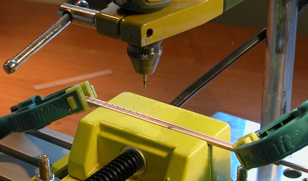 Wregi nieco uproscilem, bo nie, jak p. Frolich wykonywal je z kilku odcinkow listeweczek sklejajac je ze soba koncami, a raczej z jednego dluzszego odcinka drewna czeresniowego, przykladajac je do kopyta i wpuszczajac jeden koniec w w/w otwor a reszte przyginajac do scianki kopyta i stopniowo ksztaltujac ja dodatkowo za pomoca goracej kolby do lutowania, jak to robi niemiecki modelarz Gebhard Kammerlander (wideo dostepne na You Tube). Uprzednio te listeweczki trzeba przez chwile namoczyc w letniej wodzie i dopiero potem klasc na kopyto i wyginac na goraco. To sie daje zrobic!