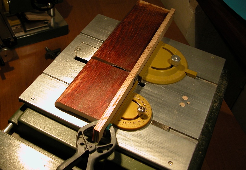 Na początek w deseczkach o grub. 2 mm taką oto metodą naciąłem poprzeczne rowki: