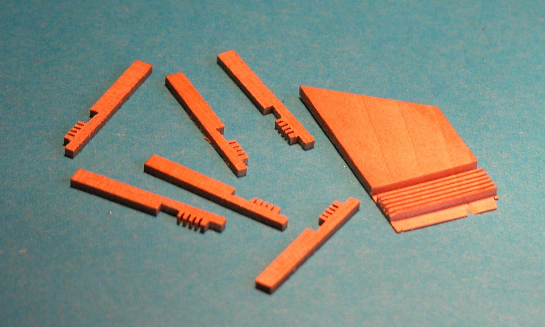 Ponieważ listwy/grzebyki ciąłem frezem 0,5 mm (tym samym, którym żłobiłem rowki) powstałe w ten sposób „krokiewki” doskonale do siebie pasowały – rzaz (0,5mm) odpowiadał planowanemu odstępowi między listwami.