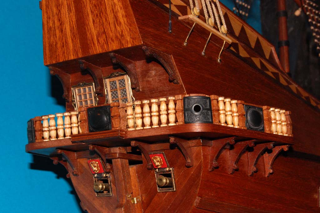 znalazłem taką ozdobę na duńskim modelu Sophie-Amalia (1650), no i na modelu Sovereign of the Seas Doris.