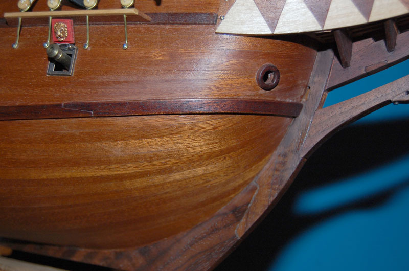 Na replikach czy modelach, które oglądałem, odbojnice idealnie "współgrają" ze wzmocnieniami (węzłówkami) kolana dziobowego (iglicy). Żeby uzyskać prawidłową linię, listwa odbojowa powinna na samym dziobie "iść" po łuku. Tyle tytułem wstępu