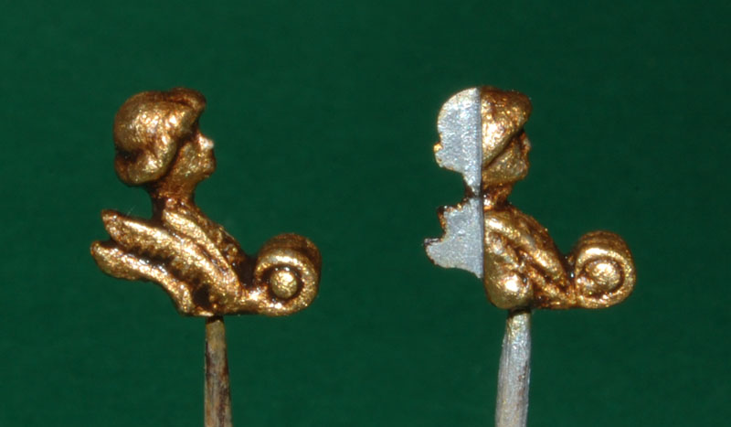 Robiąc odlewy wolut, odlałem również płaskie aplikacje (jako "ornamentyka do zasłaniania" ;) ).