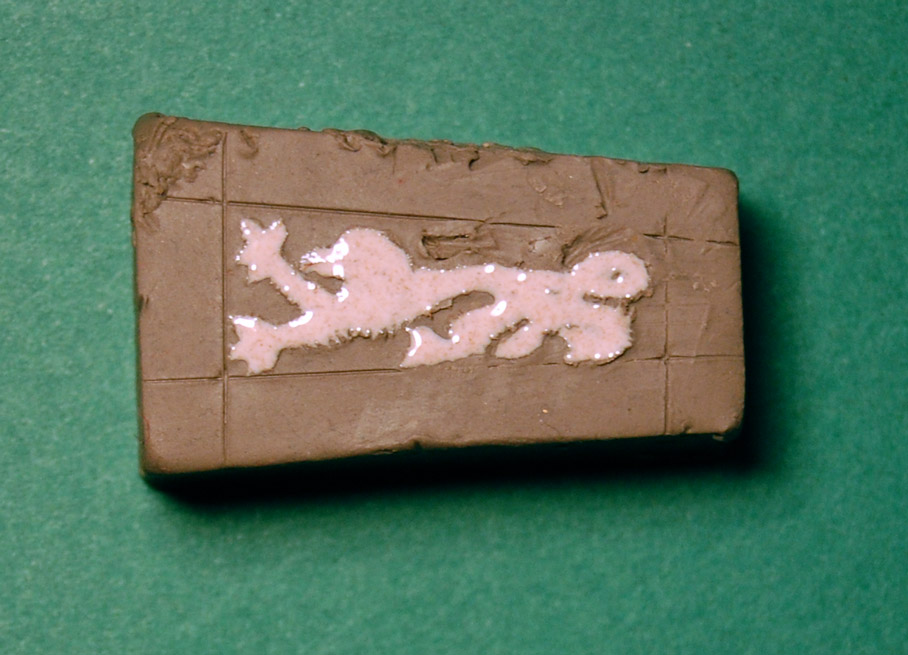 W plastelinowym "placku", który posłuży za formę określam pole "rzeźbienia" (w wypadku panopli to 15 x 25 mm) i robię igłą wstępny rysunek