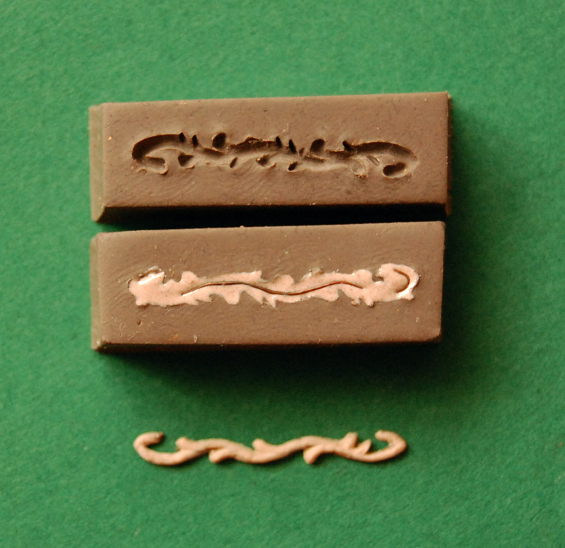 W plastelinie zrobiłem formę wąskiego ornamentu nad panoplium ze zbroją