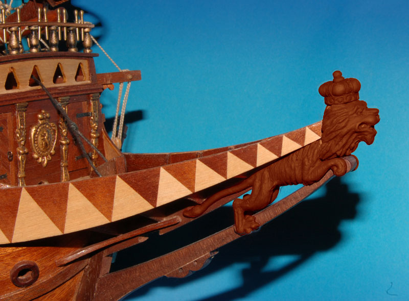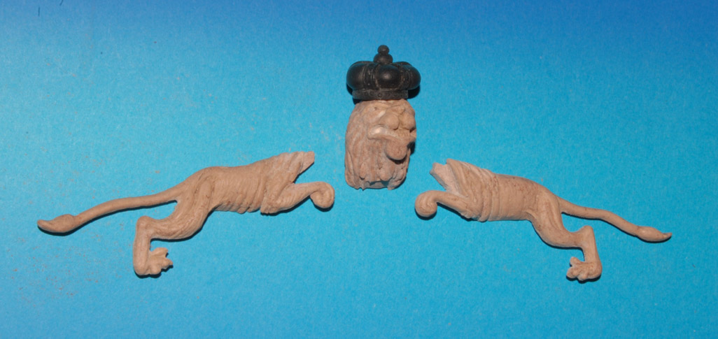 Model lwa mam, teraz trzeba podjąć decyzję jaką ma mieć kolorystykę, bo możliwości jest kilka: od drewnianych, poprzez malowane do całkowicie lub częściowo złoconych. Gwoli ścisłości złoto (lub imitacje) było stosowane w modelach, w rzeczywistości stosowano farbę, że zacytuję z artykułu p. Krzysztofa Gerlacha - "...Miejsca rzekomo złocone (rzeźby) z reguły pokrywano naprawdę tylko żółcią neapolitańską. ..."