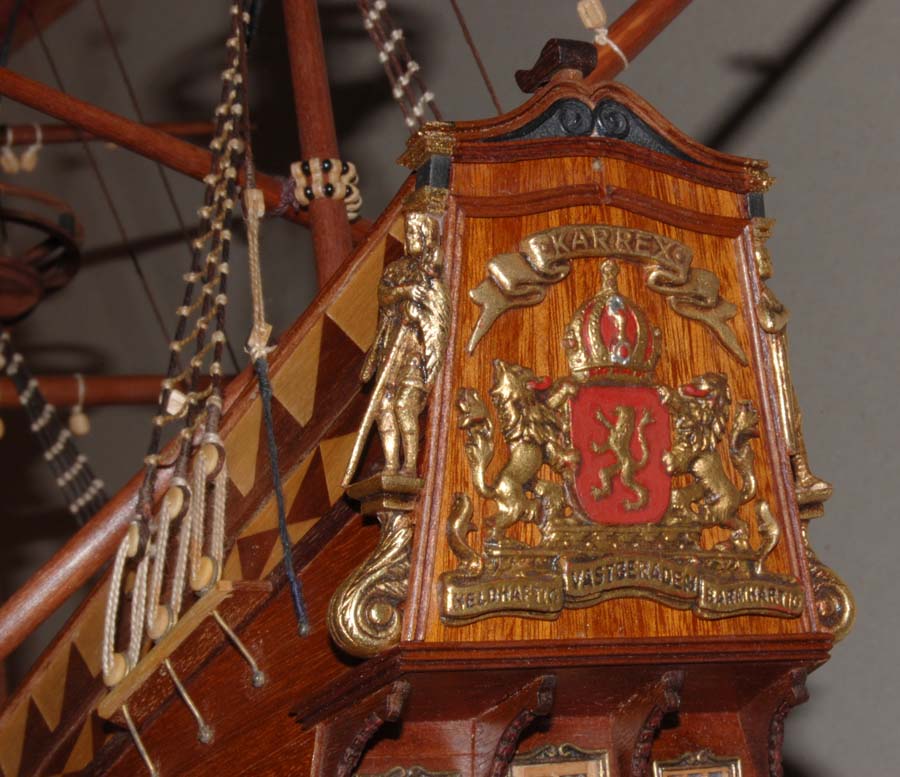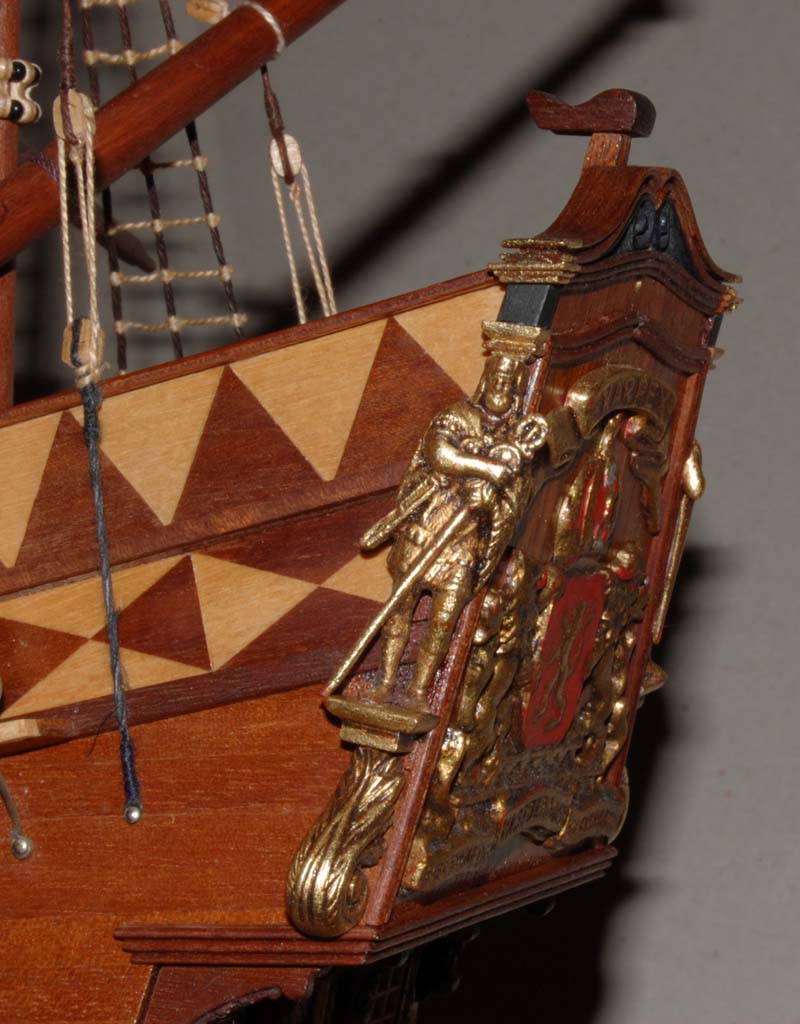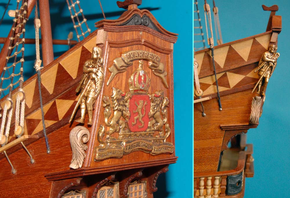 Sporo ozdób "głowami" znajdziemy na duńskim galeonie 100 działowym Sophie-Amalia, 1650