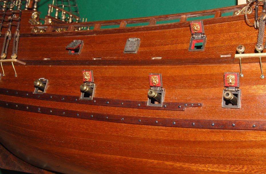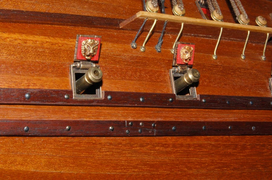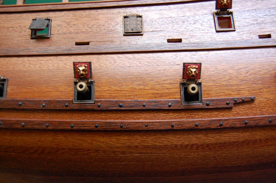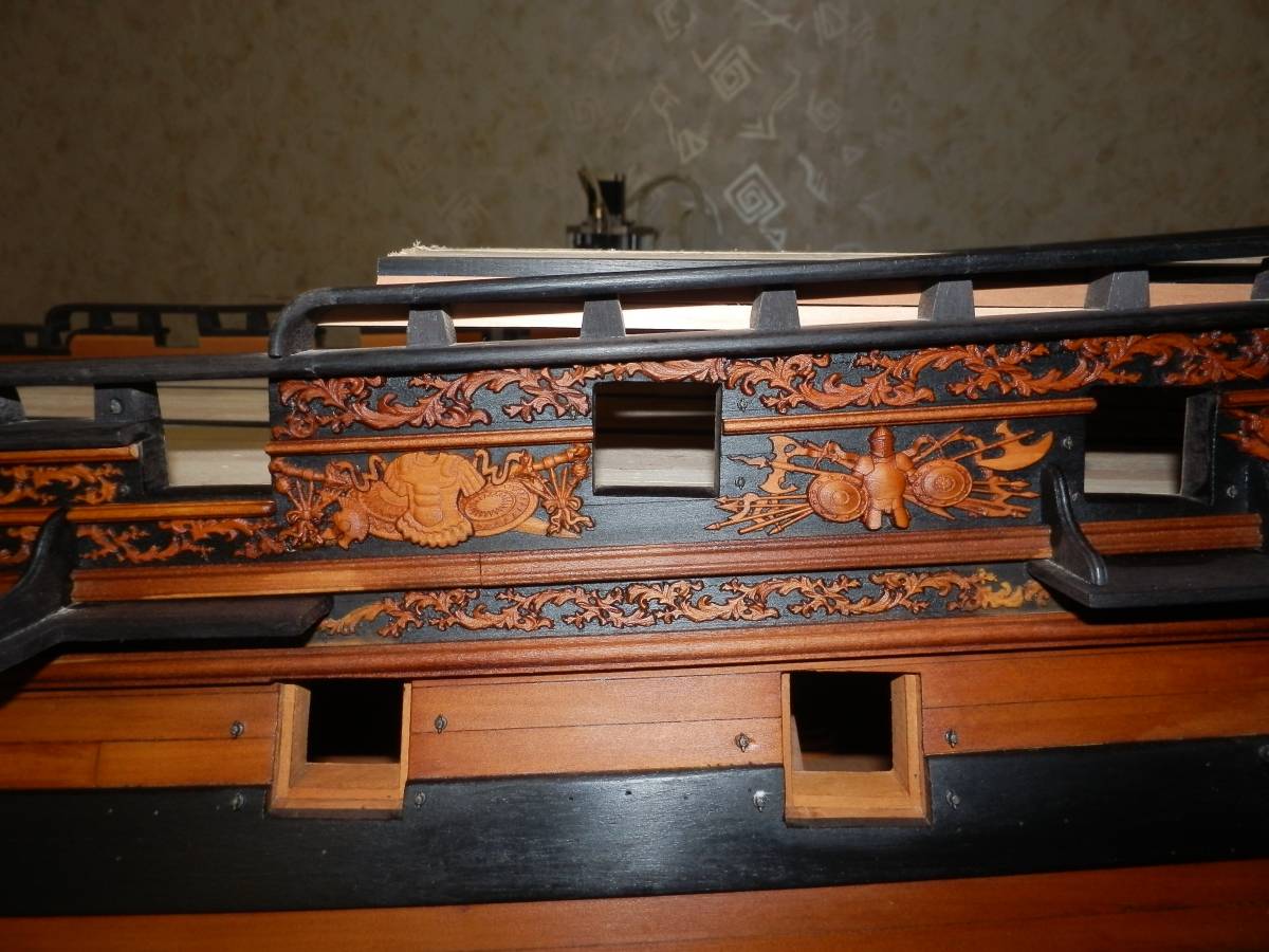 Pole działania to powierzchnia nadburć pomiędzy górną listwą a parapetem. Wokół ambrazur (na burcie są cztery) zdobne ramy i aby zachować "rytm", to tam gdzie nie ma ambrazur będą głowy lwów (kolejne cztery ramki - razem będę potrzebował szesnaście), pomiędzy nimi "panoplia" - głównie wzorowane na SotS (również szesnaście na obie burty). No i tyle w skrócie