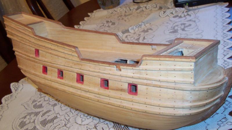 Witam.Przybyło trochę detali,I chyba wreszcie się zdecydowałem czym pomaluje kadłub.Jest to olej 3v3 kolor tek.Musiałbym zatrudnić kowali i ślusarzy i porobić okucia drzwi i furt działowych ale trochę się tego boje,jak mi to wyjdzie.Próbowałem z blachy wyciąć paski lecz wychodziły mi paski różnej szerokości,nie mogę uciąć równych nie jest to taki proste.Ale może trzeba znaleźć jakiś sposób???Przydalaby sie teraz tez tokarka:(
