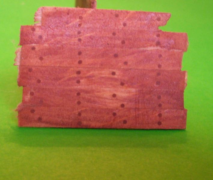 Andrzej popełniłeś jeden niewybaczalny błąd: położyłeś "kawał drewna" na białym obrusie;) Ale to nic nie szkodzi, w następnym modelu dasz gęściej imitację gwoździ i będzie dobrze. Pamiętam, że Mirek gdzieś w którejś relacji wstawił rys. z układem kołkowania burt XVIIw. galeonu.