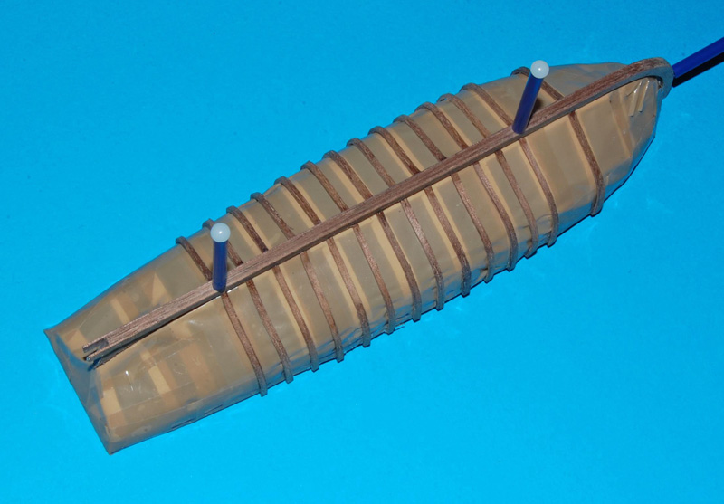 Wręgi wykonałem ze sklejonego forniru z listewek o szerokości 1,5 mm i gr. 1,2 mm, formowane do kształtu na parze.