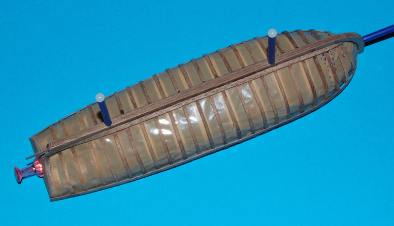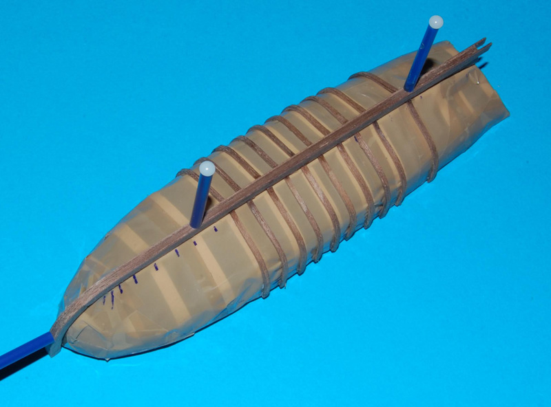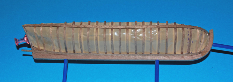 Wręgi wykonałem ze sklejonego forniru z listewek o szerokości 1,5 mm i gr. 1,2 mm, formowane do kształtu na parze.