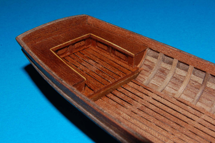W drugiej szalupie zrobiłem zabudowane ławki (na wzór z planu, tak chciałem zrobić w pierwszej, ale zaniechałem). Zrezygnowałem natomiast z dekoracji w intarsji, ale nie mogłem sobie odmówić wszystkiego .