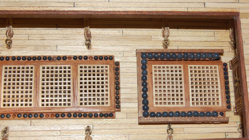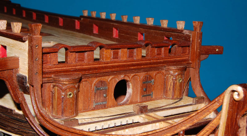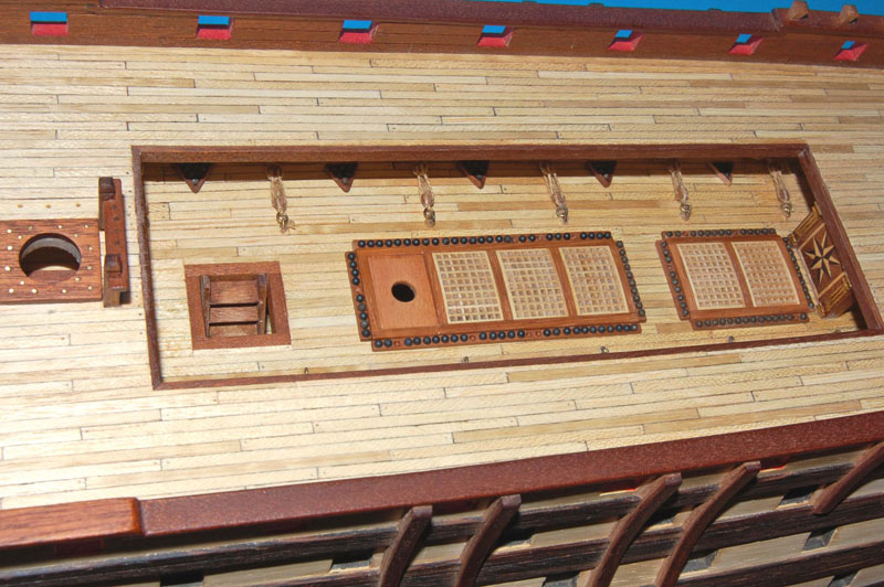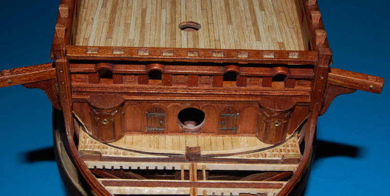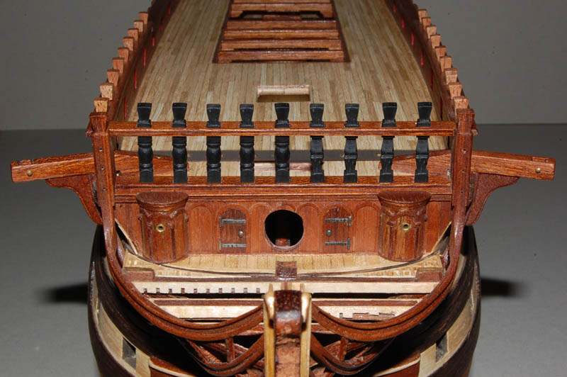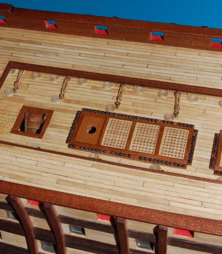 Użyłem tych samych pokładników, chociaż chciałem zmienić na belkę dwuczęściową (jak na HMS Victory). Podobne rozwiązanie zrobił wydawca (AL) zestawu Santa Ana, ale cały ten zestaw przypomina Victory (różnicę stanowi jedynie pawęż i kąt bukszprytu).