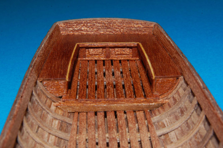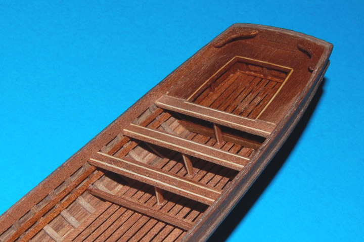 W drugiej szalupie zrobiłem zabudowane ławki (na wzór z planu, tak chciałem zrobić w pierwszej, ale zaniechałem). Zrezygnowałem natomiast z dekoracji w intarsji, ale nie mogłem sobie odmówić wszystkiego .