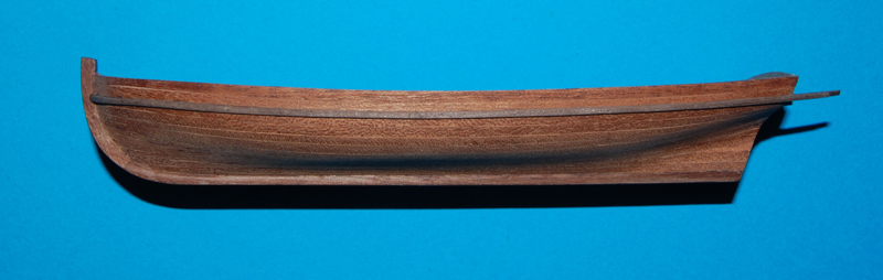 ). Końcówki wręgów ścieniłem, żeby już nie pogrubiać krawędzi burt. Na to zostanie naklejona listwa mahoniowa, wykończeniowa.