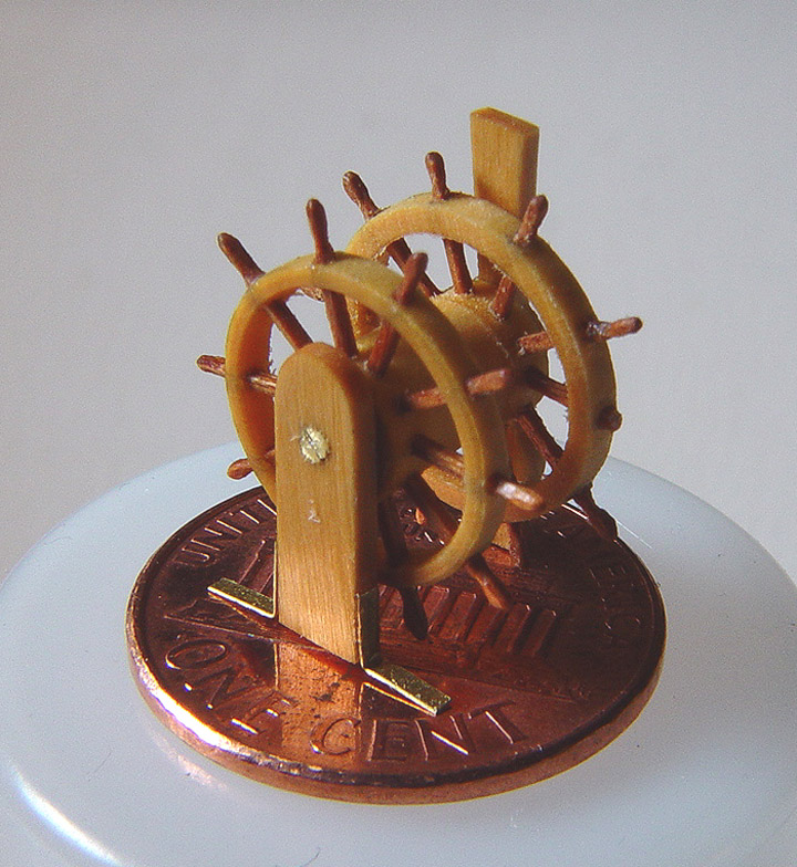 Ja swego czasu modelowalem takie podwojne kolo sterowe dla swego modelu Victory 1:98. Raczej bez mini tokarki nie obejdzie sie. Bizuterska robotka!