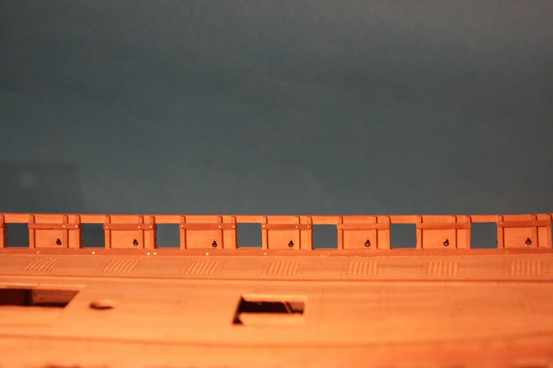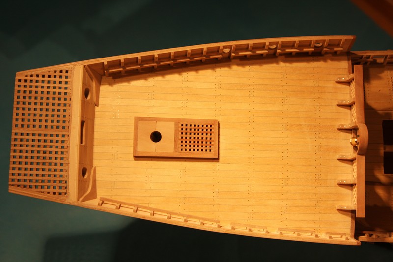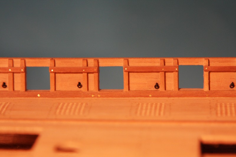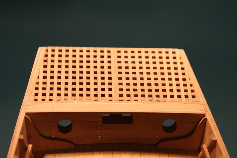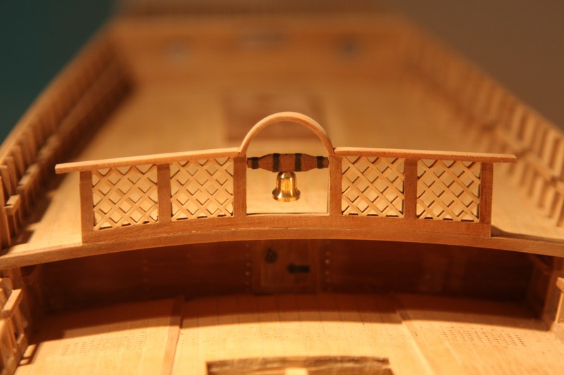 W chwilach wolnych od pracy troche podłubałem przy górnym pokładzie.Brzeg pokładu i nadburcia,gdzie widoczna była sklejka zamaskowałem listewką 3x3mm.Może nie jest to zbyt poprawne,ale wizualnie nie mogłem strawić sklejki.Dzwonnica wykonana inaczej niż w planach zestawowych (wzorowana na Le Requin).Jest to trzecia wersja i tym razem ostateczne.Dwie pierwsze wyszły zbyt masywne i wylądowały w koszu.Do tej wykorzystałem zestawowe gretingi zktórych wykonałem ażury.Wyszło jak wyszło i już lepiej nie będzie.Brakuje jeszcze uchwytu do dzwonu oraz kolumienki,która będzie podpierała całą konstrukcję na dolnym pokładzie,ale to dopiero po zamontowaniu dział.Pozdrawiam.Marcin