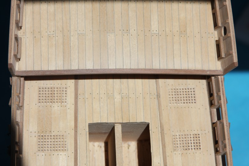 Na rufie jedynym widocznym brzegiem będzie brzeg dochodzący stycznie do lustra rufy(zachowany nienaruszony brzeg gretingu).Pozostałe brzegi (zarówno boki jakbrzeg od kadłuba) zakryte będą przez listwy parapetów.Pozdrawiam.Marcin