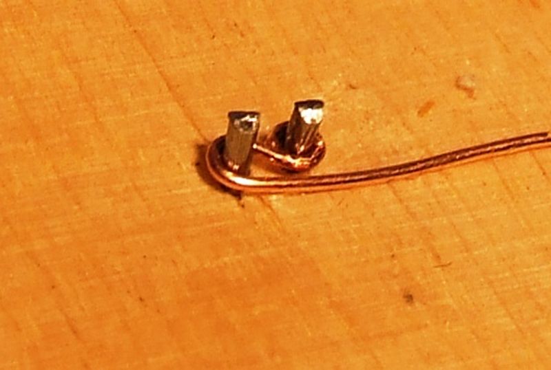 Drut (0,5 mm) jest na tyle miękki, że oczko można było uformować przy pomocy pincetki.
