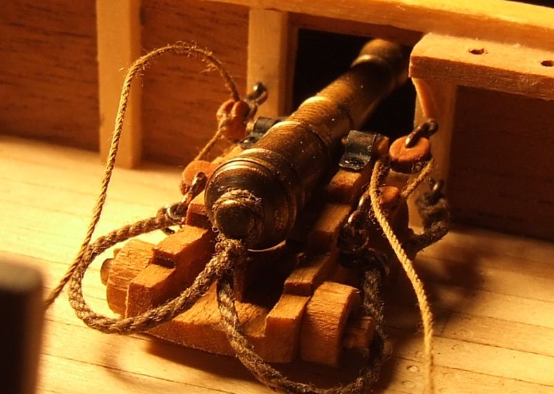 Szkuner ma ukończone fały armat (wszystkich 8-miu).