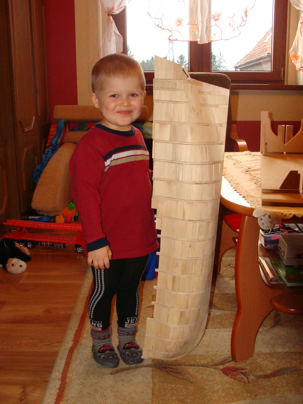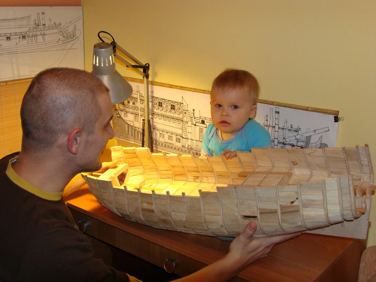 Mówisz, że rośnie Ci pomocnik:) Mój dwa dni temu dorwał się pilnikiem do kadłuba RW, w porę podsunąłem kopyto;) Trzeba z bobasami uważać.