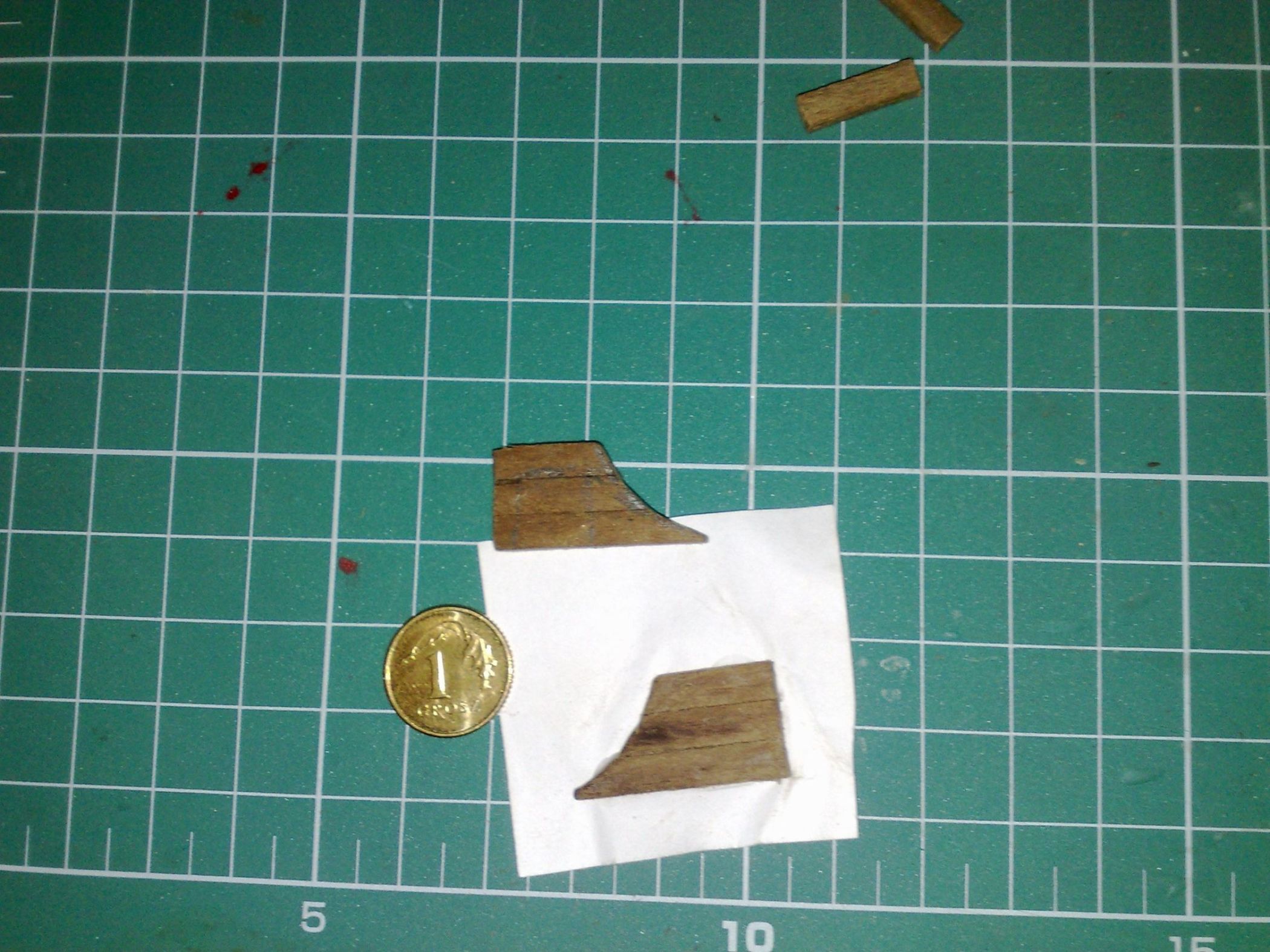 Wykonałem wzmocnienia  na burtach z orzecha 2x4 mm  najpierw powycinałem  kilka listewek o takich samych długościach.  Przykleiłem je na kartkę papieru  tak aby przylegały jak najlepiej do siebie . Następnie  odrysowałem łuk   który potem wyciąłem przeszlifowałem i efekty poniżej.