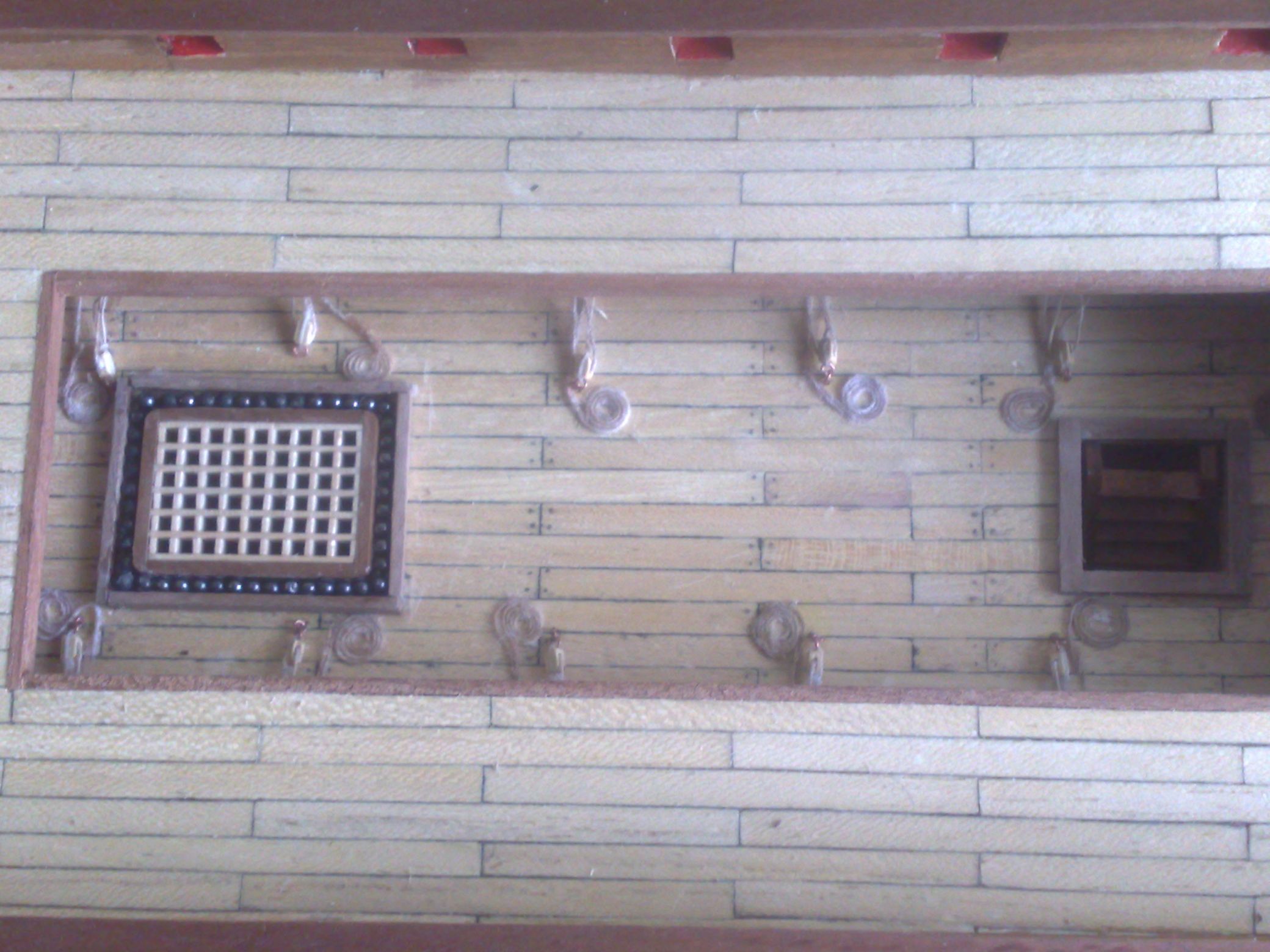 Wykonałem także greting. Po sklejeniu i oszlifowaniu pokryłem go werniksem damrowym matowym . Nie malowałem tylko strony która ma być przyklejona do pokładu.