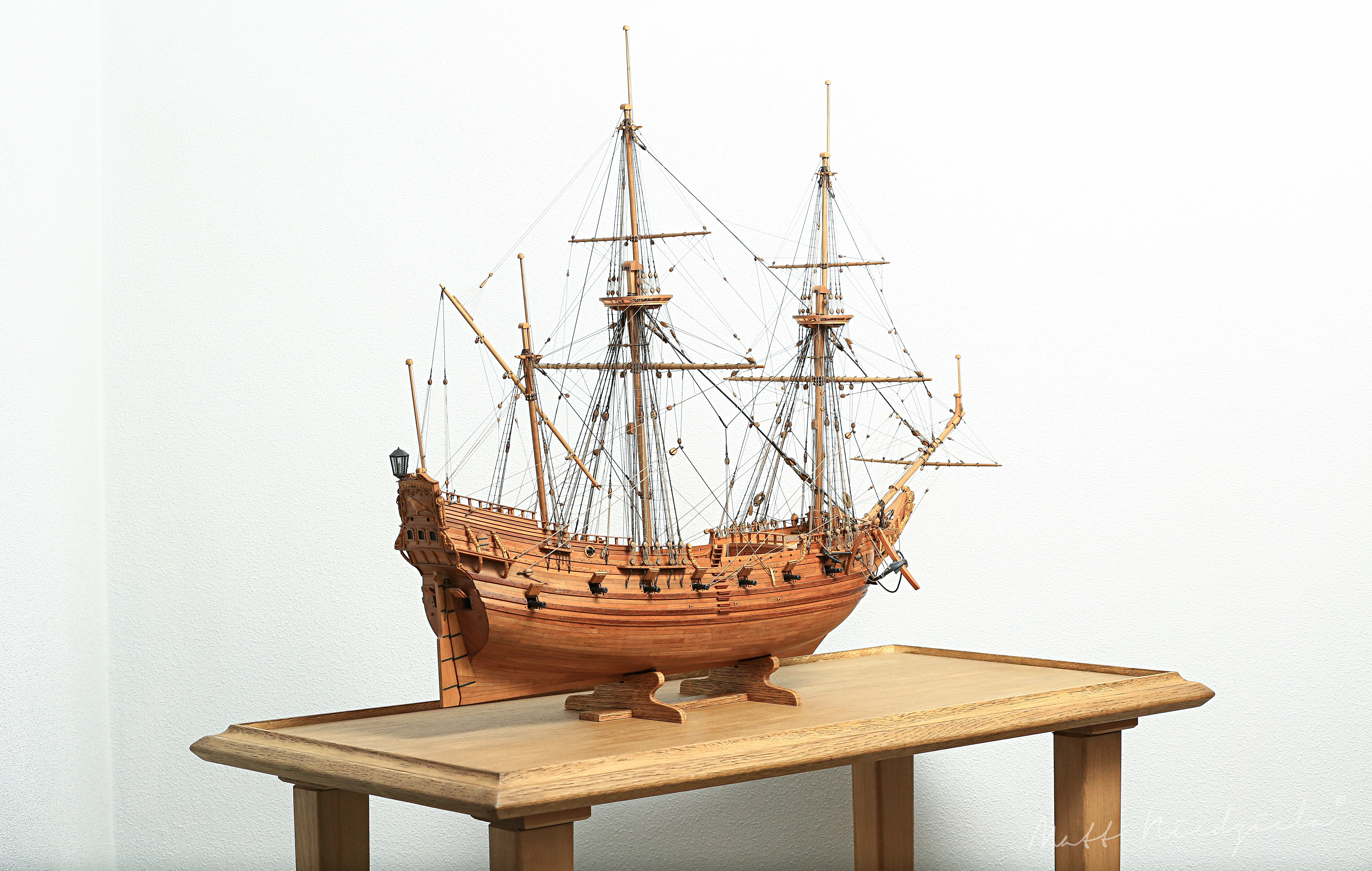 Dziś zawiązałem ostatnie linki... odkurzyłem model z paprochów, co spowodowało zakończenie prac w stoczni