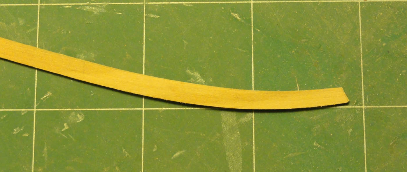 Najwięcej problemów sprawiło wygięcie do kształtu odbojnic na dziobie... listwa 3x5mm już nie jest taka skora do współpracy...