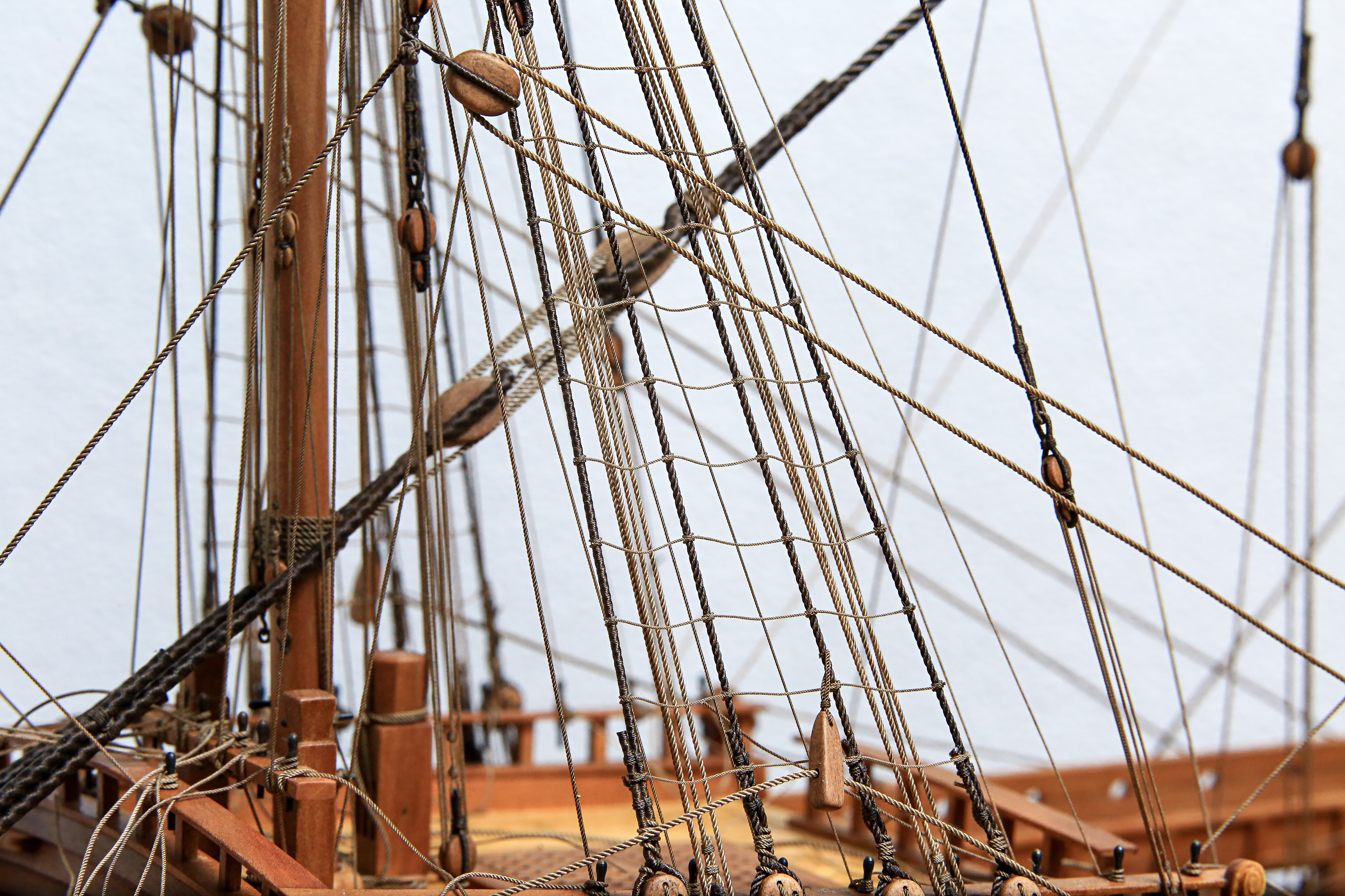 Tym razem, wleciały na warsztat jedne z grubszych lin oraz większych bloków na okręcie.